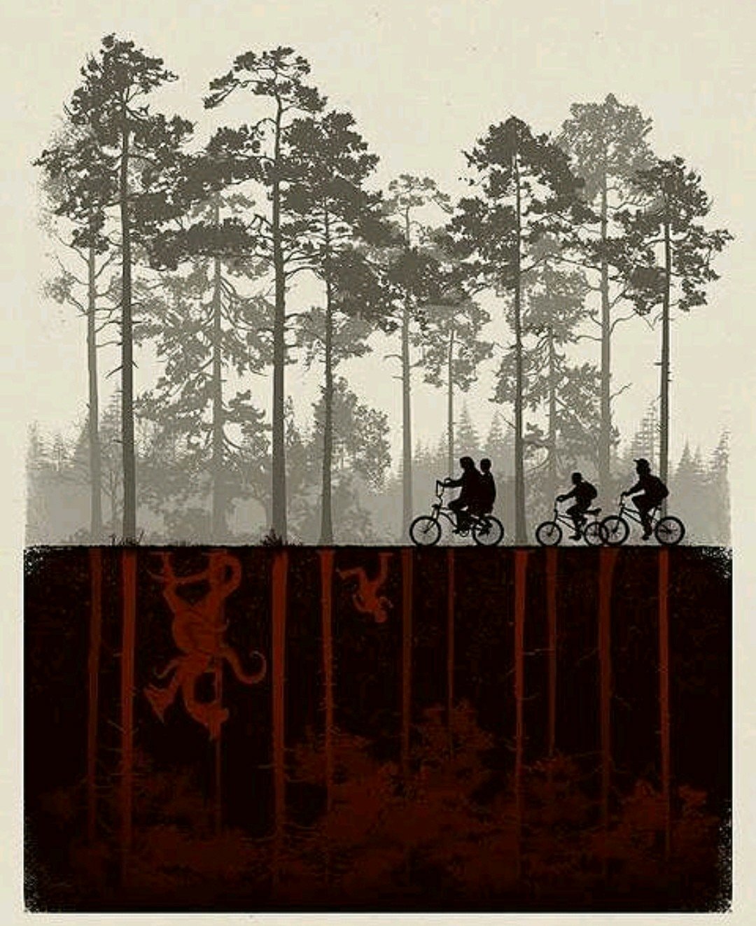 The Upside Down is an alternate dimension existing in parallel to the human world. It contains the same locations and infrastructure as the human world, but it is much darker, colder and obscured by an omnipresent fog.